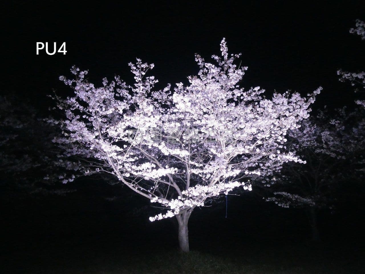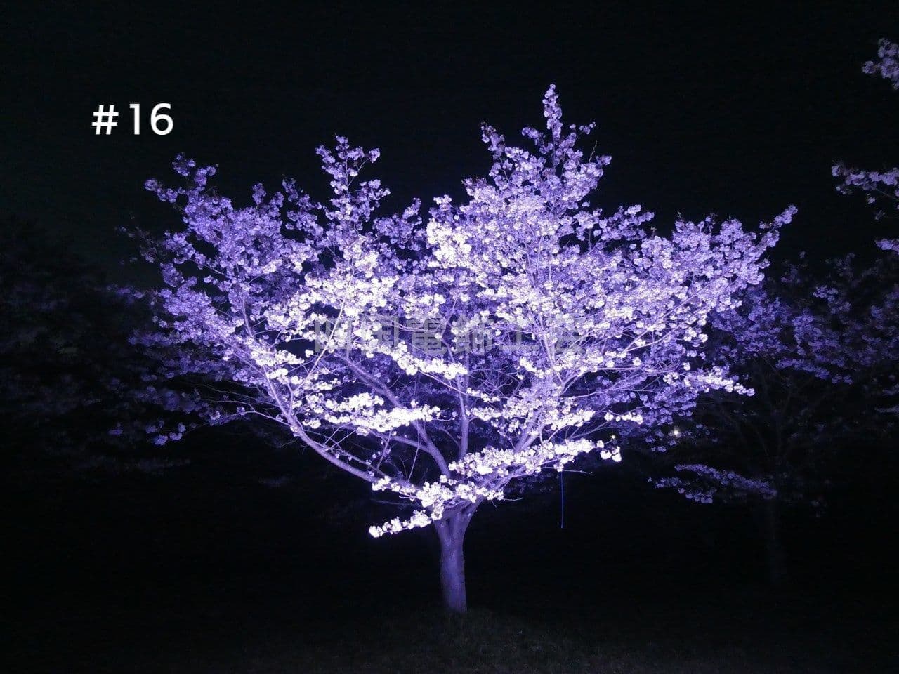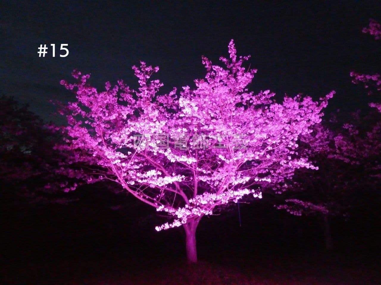 NC(ノーカラー)の灯りでは、桜の花びらが白っぽくなり日本人の多くが思い描く桜の薄桃色からは遠ざかります。#17あたりがイメージに近い色に感じますが、#16も年配者には喜ばれます。最近はカラーLEDライトを用いることもあり、わざわざフィルターを貼る必要はあるのかとも思いますが、予算が少ないの現場では今でもフィルターを活用して演出効果を上げています。