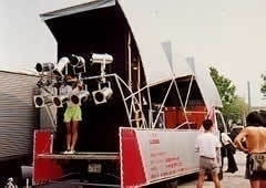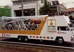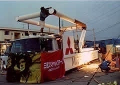 89年のよさこいは生涯忘れることができない。例年は8日の夕方に車は装飾を施し、音響・照明・電飾をつける工場へやってくる。それがこの年は、連日の雨で看板屋さんも作業が遅れてんてこ舞い状態だった。値切った分だけ後回しなのか・・・。MMCミラージュ社中の車は骨組みさえ出来9日21時を過ぎて作業現場へ見に行くも何一つ進んでいない。何時になったら完成するの? 見ていても仕方ないので、私は三菱へ戻り待合室で眠ることにした。何時だろうか?ふと目がさめ、近くにいる人に「地方車はー」と聞くと、首を横に振る。あーそうと私はまた眠る。周りが白々と明るくなり始めても車は来ない。
