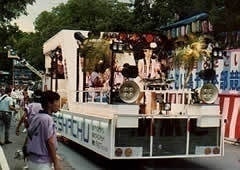 二日目はつまらない録音も止めて会場へ行くとラッパスピーカーをつけた車に先導され、前日以上にひどい音で踊っていた。みんなが同じ曲だったかは記憶に無いが、ひとつだけロックのリズムで踊る若者チームに目が留まった。後日、友人に聞くと、あれは上田正樹(ヒット曲:悲しい色やね)率いるチームだとわかった。上田正樹は高知で活躍するアマチュアバンド(トラベリンバンド→アプサラス)が気に入ってバックバンドとして全国へツアーでまわっていた。