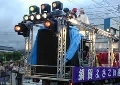 昔のように大型車輌での参加が出来なくなり、地方車は単なる音響設備の車輌になったかとも思うがやはりチームにとっては象徴であるので粗末にはできない。どんなに綺麗に飾り付けても暗い会場ではそれも無駄になってしまう。本部競演場はTVの中継などもあって明る過ぎるほど明るいが、地区会場は夜ともなれば真っ暗、発電機付きの水銀灯で照らしてもさむーい灯りで祭りを盛り上げるには少々役不足、地方車に取り付けられた照明が踊り子を照らす。踊り子が前方から降り注ぐ閃光の中で乱舞する。