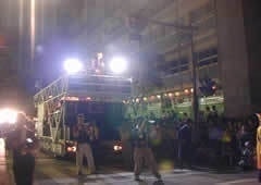 これは衝撃的だった。踊りに興味のない私でも感動した。実はそれより地方車へ設置した照明へ目が行っていたのだ。車全体が照明機材で出来ている いったい何台あるんだろう。中でオペレートしているひとは大変だろうなあと心配しつつも・・・