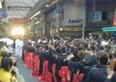 翌年、母から「帯屋町が踊り子を募集しているから踊ってくればいい、日当2000円らしい」何それ、お金もらって踊るの?聞くところによると、商店街の踊り子隊には各店が踊り子を出すノルマがあるらしく、それが出来ないところはバイトを雇ってでも集めてくると言うことらしい。確かに店先には「よさこいアルバイト募集中」と札が掛かっていたような気がする。今では考えられない昔の話。