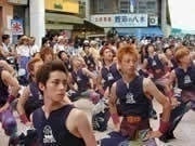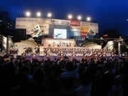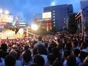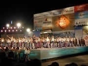 前夜祭(中央公園ステージ)は人気チームが見られるとあって会場はスゴク混雑しています。場所取りの為に数日前からシートが置かれ狭い会場はすし詰め状態です。6時半スタートで終わりは9時半過ぎ、例年、同日深夜にテレビ放送があります。