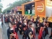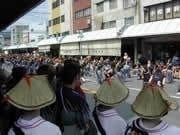 地区会場への移動はタクシーやバスなど車は出来るだけ避け、踊り子も使ってる路面電車をお勧めします。普段でも渋滞する市内に160チーム程の地方車・救護車・移動用大型バスなどが出るので混雑は避けられません。