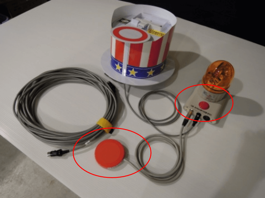 ・机の上にアクションハット、回転灯BOX、外部押しボタンを置く。