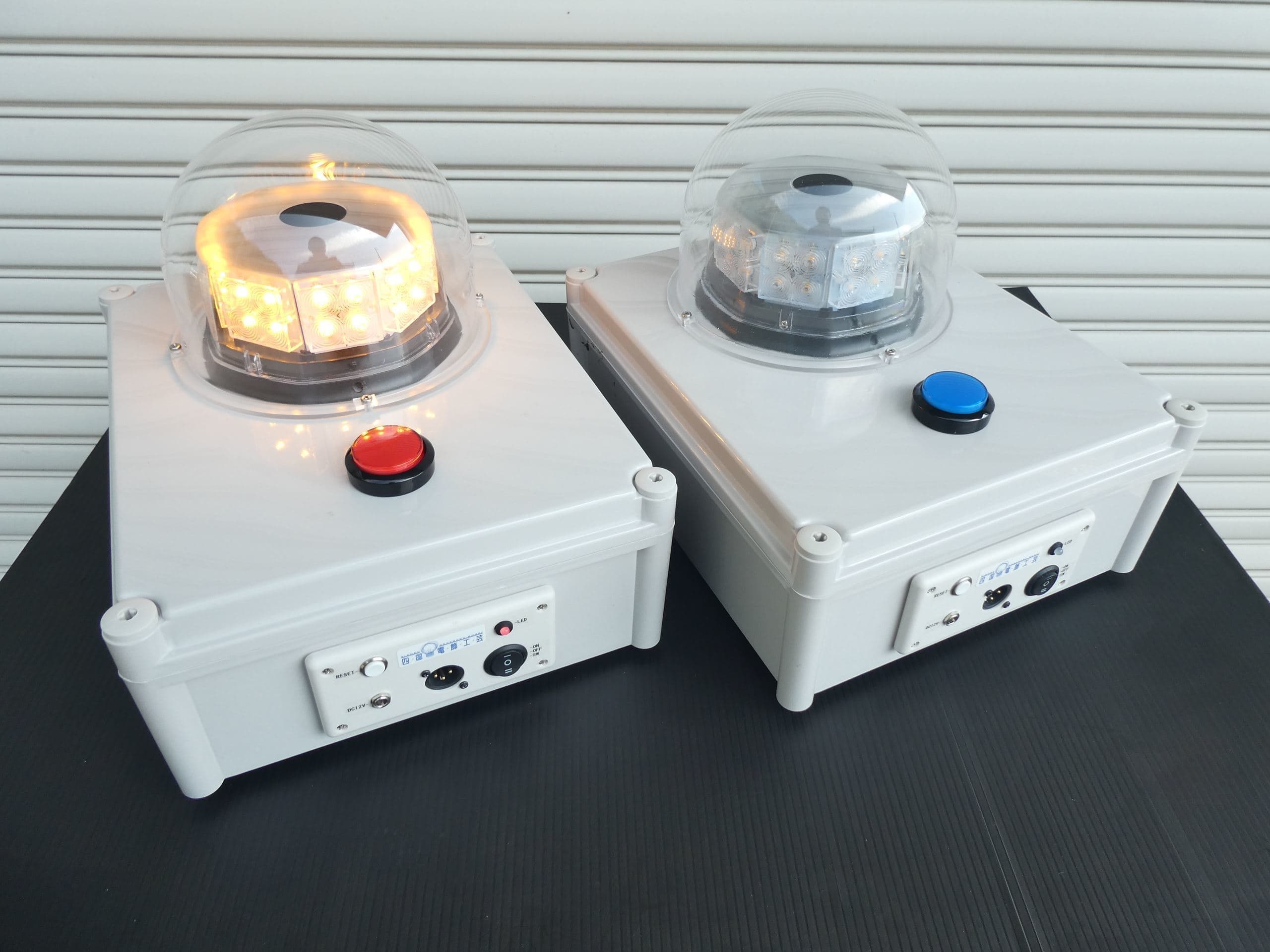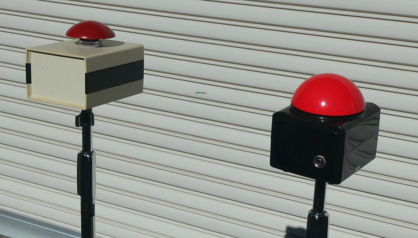 竣工式典や点灯式で、もっと大きなガッチリしたボタンが欲しいとのご要望にお応えして大きな式典でも見劣りしないボタンスイッチを製作しました。コントローラーなしで単体でも使用することができます。ボタンスイッチを写真のものから変更しております。電源は100V、ACアタブタ(12V2A)を経由して給電します。AC100V電源が準備できない場所では、ポータブル電源などをご用意いただくことで手軽にご利用いただけます。